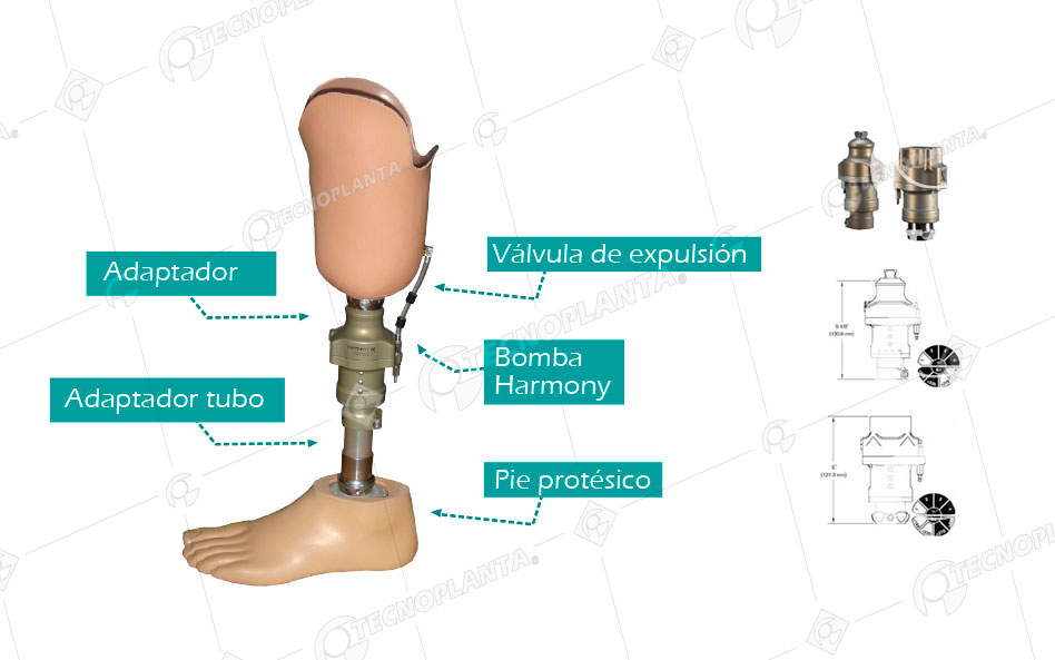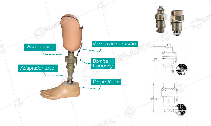 El Sistema Harmony® controla el volumen del muñón y a la vez evita las fluctuaciones. Los encajes Harmony el peso de superficie total que soportan los encajes, no como los encajes convencionales. Se evitan los picos de presión en las zonas de carga y se reemplazan con el Sistema Harmony® que crea eficazmente un entorno elevado de vacío entre el encaje y el liner. Esto se logra con el uso de una bomba y de una válvula simple de expulsión. Con cada paso, se activa el sistema y mantiene la presión negativa requerida dentro de un rango definido.